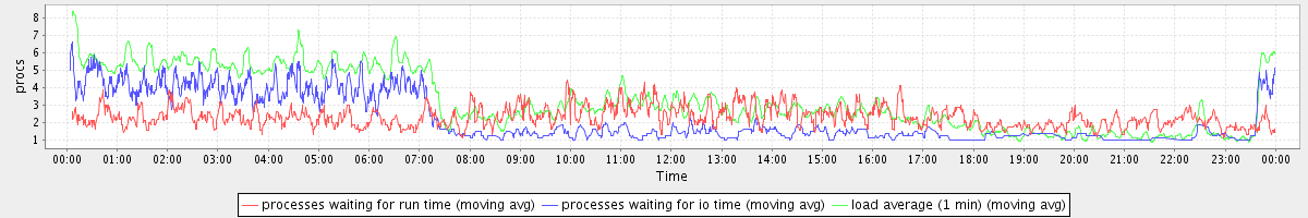 avg(processes waiting for run time) = 1.59 avg(processes waiting for io time) = 1.62 avg(load average (1 min)) = 3.27