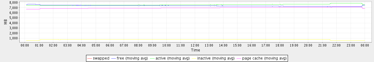 avg(swapped) = 0.00 avg(free) = 7389.22 avg(active) = 7603.74 avg(inactive) = 702.80 avg(page cache) = 6970.57