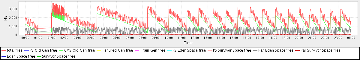 avg(total free) = 1925.09 avg(PS Old Gen free) = 0.00 avg(CMS Old Gen free) = 1384.30 avg(Tenured Gen free) = 0.00 avg(Train Gen free) = 0.00 avg(PS Eden Space free) = 0.00 avg(PS Survivor Space free) = 0.00 avg(Par Eden Space free) = 502.14 avg(Par Survivor Space free) = 38.65 avg(Eden Space free) = 0.00 avg(Survivor Space free) = 0.00