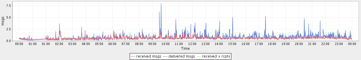 avg(received msgs) = 0.57 avg(delivered msgs) = 0.76 avg(received x rcpts) = 0.83