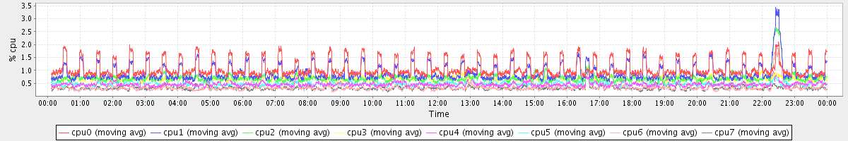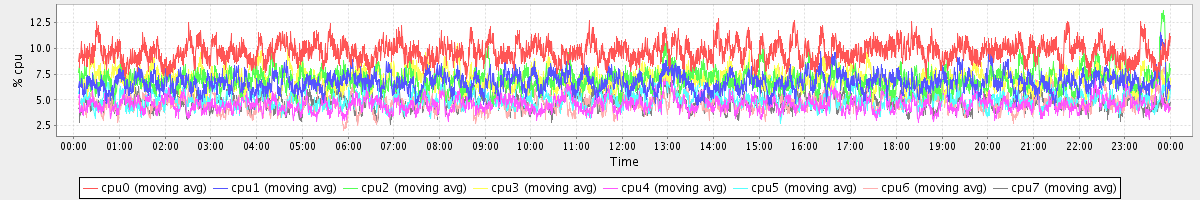 avg(cpu0) = 1.08 avg(cpu1) = 0.90 avg(cpu2) = 0.71 avg(cpu3) = 0.70 avg(cpu4) = 0.47 avg(cpu5) = 0.49 avg(cpu6) = 0.34 avg(cpu7) = 0.33