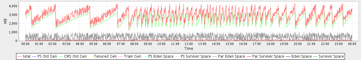 avg(total) = 3011.00 avg(PS Old Gen) = 0.00 avg(CMS Old Gen) = 2435.61 avg(Tenured Gen) = 0.00 avg(Train Gen) = 0.00 avg(PS Eden Space) = 0.00 avg(PS Survivor Space) = 0.00 avg(Par Eden Space) = 487.24 avg(Par Survivor Space) = 88.14 avg(Eden Space) = 0.00 avg(Survivor Space) = 0.00