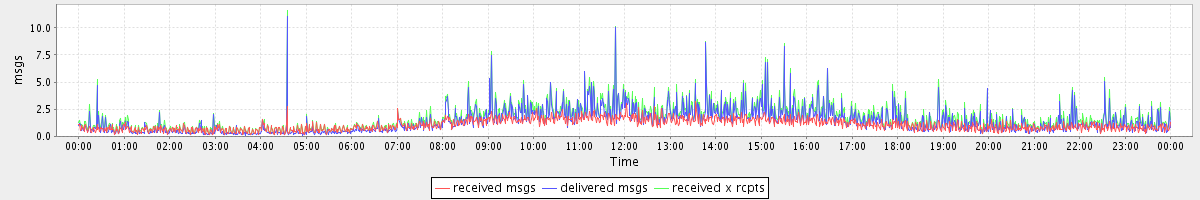 avg(received msgs) = 1.07 avg(delivered msgs) = 1.38 avg(received x rcpts) = 1.67