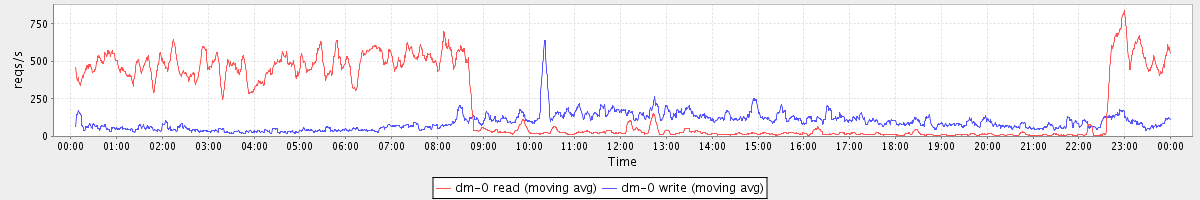 avg(dm-1 read) = 428.42 avg(dm-1 write) = 1096.59