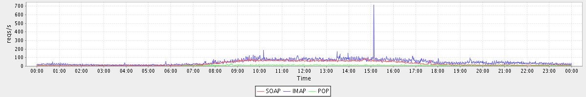 Host zm05.stanford.edu: Mailboxd: Request Rate by Client Protocol