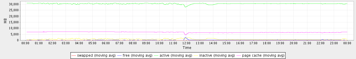 avg(swapped) = 0.23 avg(free) = 170.39 avg(active) = 30446.15 avg(inactive) = 872.21 avg(page cache) = 6660.48