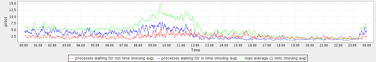 avg(processes waiting for run time) = 1.77 avg(processes waiting for io time) = 2.65 avg(load average (1 min)) = 5.02