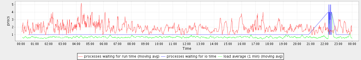 avg(processes waiting for run time) = 0.81 avg(processes waiting for io time) = 0.05 avg(load average (1 min)) = 0.68