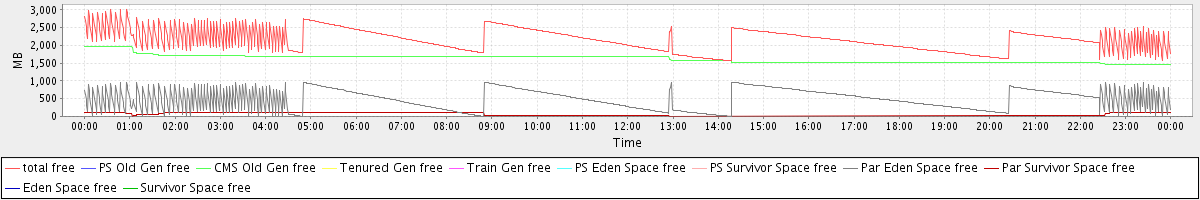 avg(total free) = 2168.71 avg(PS Old Gen free) = 0.00 avg(CMS Old Gen free) = 1630.47 avg(Tenured Gen free) = 0.00 avg(Train Gen free) = 0.00 avg(PS Eden Space free) = 0.00 avg(PS Survivor Space free) = 0.00 avg(Par Eden Space free) = 487.25 avg(Par Survivor Space free) = 50.99 avg(Eden Space free) = 0.00 avg(Survivor Space free) = 0.00