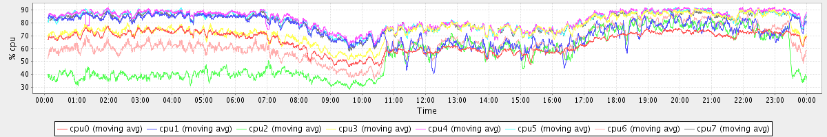 avg(cpu0) = 65.53 avg(cpu1) = 74.27 avg(cpu2) = 54.24 avg(cpu3) = 75.38 avg(cpu4) = 82.86 avg(cpu5) = 81.92 avg(cpu6) = 64.32 avg(cpu7) = 81.10