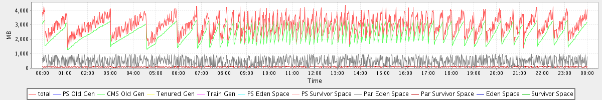 avg(total) = 2976.72 avg(PS Old Gen) = 0.00 avg(CMS Old Gen) = 2400.15 avg(Tenured Gen) = 0.00 avg(Train Gen) = 0.00 avg(PS Eden Space) = 0.00 avg(PS Survivor Space) = 0.00 avg(Par Eden Space) = 483.05 avg(Par Survivor Space) = 93.53 avg(Eden Space) = 0.00 avg(Survivor Space) = 0.00