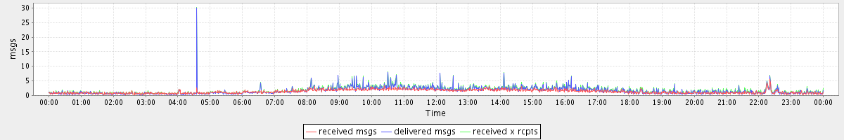 avg(received msgs) = 1.33 avg(delivered msgs) = 1.60 avg(received x rcpts) = 1.84