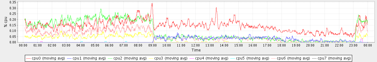avg(cpu0) = 0.00 avg(cpu1) = 0.00 avg(cpu2) = 0.00 avg(cpu3) = 0.00 avg(cpu4) = 0.00 avg(cpu5) = 0.00 avg(cpu6) = 0.00 avg(cpu7) = 0.00
