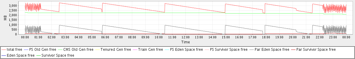 avg(total free) = 2793.02 avg(PS Old Gen free) = 0.00 avg(CMS Old Gen free) = 2214.90 avg(Tenured Gen free) = 0.00 avg(Train Gen free) = 0.00 avg(PS Eden Space free) = 0.00 avg(PS Survivor Space free) = 0.00 avg(Par Eden Space free) = 517.54 avg(Par Survivor Space free) = 60.58 avg(Eden Space free) = 0.00 avg(Survivor Space free) = 0.00