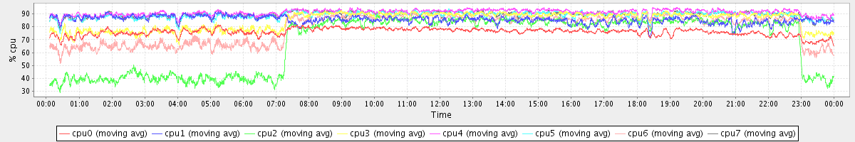 avg(cpu0) = 76.01 avg(cpu1) = 85.59 avg(cpu2) = 68.16 avg(cpu3) = 84.90 avg(cpu4) = 91.18 avg(cpu5) = 89.07 avg(cpu6) = 78.98 avg(cpu7) = 89.30