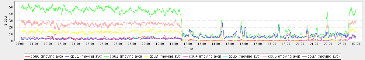 avg(cpu0) = 1.55 avg(cpu1) = 0.18 avg(cpu2) = 0.32 avg(cpu3) = 0.17 avg(cpu4) = 0.11 avg(cpu5) = 0.12 avg(cpu6) = 0.19 avg(cpu7) = 0.11