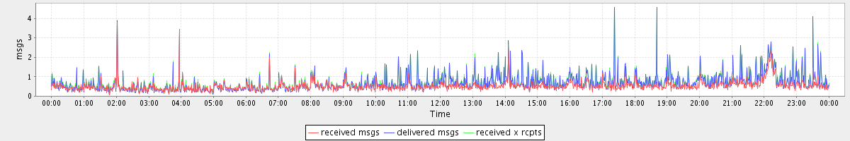 avg(received msgs) = 0.52 avg(delivered msgs) = 0.67 avg(received x rcpts) = 0.71