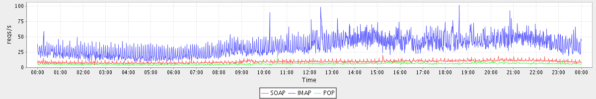 Host zm08.stanford.edu: Mailboxd: Request Rate by Client Protocol