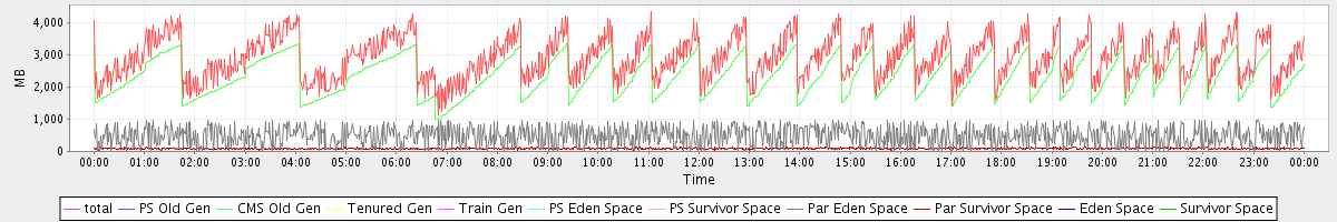 avg(total) = 2902.74 avg(PS Old Gen) = 0.00 avg(CMS Old Gen) = 2327.35 avg(Tenured Gen) = 0.00 avg(Train Gen) = 0.00 avg(PS Eden Space) = 0.00 avg(PS Survivor Space) = 0.00 avg(Par Eden Space) = 486.76 avg(Par Survivor Space) = 88.63 avg(Eden Space) = 0.00 avg(Survivor Space) = 0.00