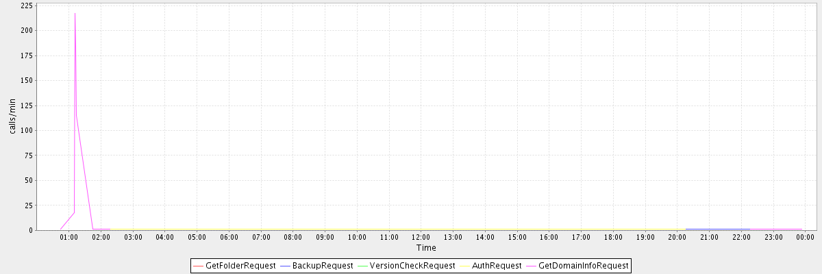 max(GetFolderRequest) = 1.00 max(BackupRequest) = 1.00 max(VersionCheckRequest) = 1.00 max(AuthRequest) = 1.00 max(GetDomainInfoRequest) = 217.00