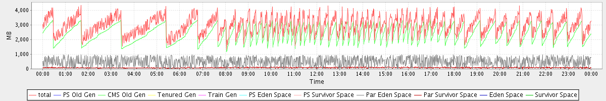 avg(total) = 2984.87 avg(PS Old Gen) = 0.00 avg(CMS Old Gen) = 2398.63 avg(Tenured Gen) = 0.00 avg(Train Gen) = 0.00 avg(PS Eden Space) = 0.00 avg(PS Survivor Space) = 0.00 avg(Par Eden Space) = 501.76 avg(Par Survivor Space) = 84.48 avg(Eden Space) = 0.00 avg(Survivor Space) = 0.00
