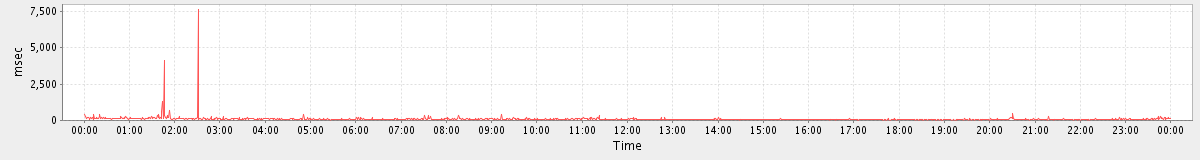 avg(BrowseRequest) = 1728.00 avg(SendInviteReplyRequest) = 921.00 avg(AutoCompleteRequest) = 1092.70 avg(RemoveAttachmentsRequest) = 1111.46 avg(ApplyFilterRulesRequest) = 2877.78 avg(ConvActionRequest.delete) = 1169.64 avg(FolderActionRequest.empty) = 2794.01 avg(ConvActionRequest.spam) = 714.38 avg(BackupRequest) = 19444.00 avg(GetQuotaUsageRequest) = 1354.00