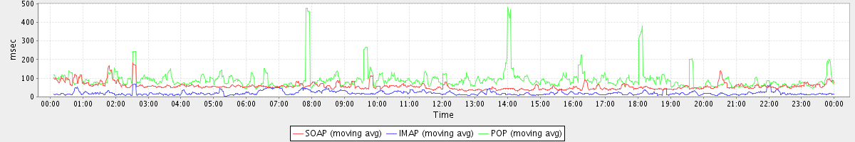 Host zm02.stanford.edu: Mailboxd: Response Time by Client Protocol