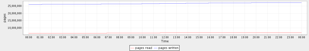 avg(pages read) = 6456510.50 avg(pages written) = 26715895.15