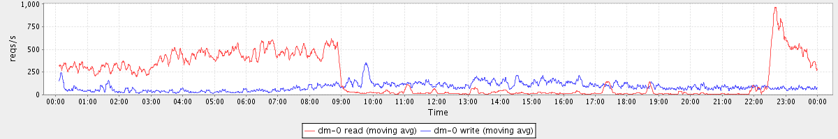 avg(dm-1 read) = 431.73 avg(dm-1 write) = 992.12