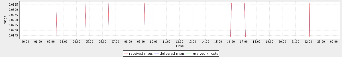 avg(received msgs) = 0.01 avg(delivered msgs) = 0.01 avg(received x rcpts) = 0.01