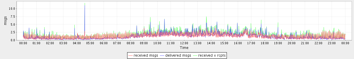avg(received msgs) = 1.29 avg(delivered msgs) = 1.27 avg(received x rcpts) = 1.79