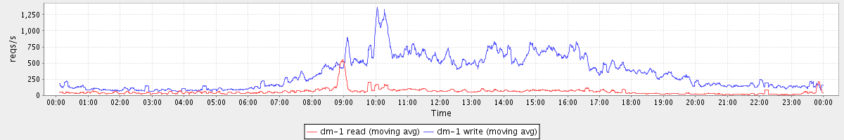 avg(dm-1 read) = 795.80 avg(dm-1 write) = 1904.96