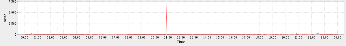 avg(DeleteAccountRequest) = 16107.00 avg(GetFreeBusyRequest) = 504.38 avg(CreateAppointmentExceptionRequest) = 356.53 avg(CheckRecurConflictsRequest) = 538.49 avg(FolderActionRequest.delete) = 343.56 avg(SendInviteReplyRequest) = 625.42 avg(AutoCompleteRequest) = 589.36 avg(GrantPermissionRequest) = 475.00 avg(FolderActionRequest.empty) = 3577.90 avg(GetQuotaUsageRequest) = 1199.00