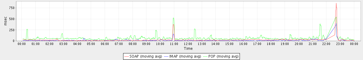 Host zm05.stanford.edu: Mailboxd: Response Time by Client Protocol