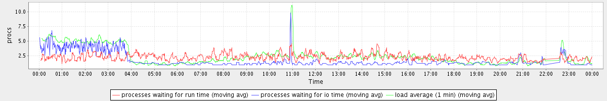 avg(processes waiting for run time) = 1.53 avg(processes waiting for io time) = 0.94 avg(load average (1 min)) = 2.45