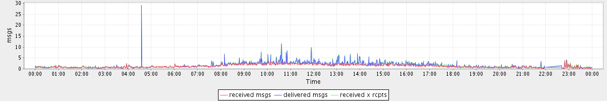 avg(received msgs) = 1.26 avg(delivered msgs) = 1.57 avg(received x rcpts) = 1.69