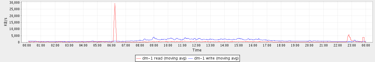 avg(dm-1 read) = 604.34 avg(dm-1 write) = 1382.01