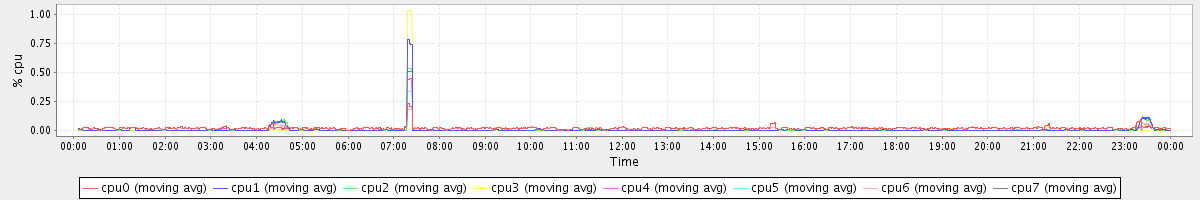 avg(cpu0) = 0.12 avg(cpu1) = 0.89 avg(cpu2) = 1.09 avg(cpu3) = 0.17 avg(cpu4) = 0.51 avg(cpu5) = 0.09 avg(cpu6) = 0.62 avg(cpu7) = 0.09