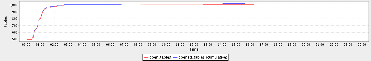 avg(open_tables) = 986.91 avg(opened_tables (cumulative)) = 999.15