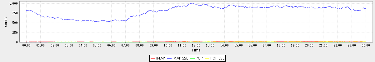 avg(IMAP) = 13.94 avg(IMAP SSL) = 800.71 avg(POP) = 0.02 avg(POP SSL) = 16.29