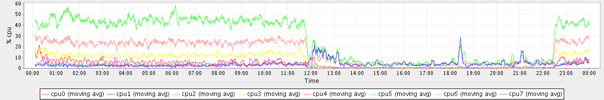 avg(cpu0) = 1.78 avg(cpu1) = 0.19 avg(cpu2) = 0.30 avg(cpu3) = 0.18 avg(cpu4) = 0.14 avg(cpu5) = 0.15 avg(cpu6) = 0.21 avg(cpu7) = 0.15