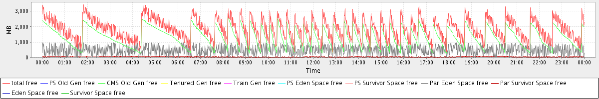 avg(total free) = 1855.38 avg(PS Old Gen free) = 0.00 avg(CMS Old Gen free) = 1316.40 avg(Tenured Gen free) = 0.00 avg(Train Gen free) = 0.00 avg(PS Eden Space free) = 0.00 avg(PS Survivor Space free) = 0.00 avg(Par Eden Space free) = 486.92 avg(Par Survivor Space free) = 52.06 avg(Eden Space free) = 0.00 avg(Survivor Space free) = 0.00