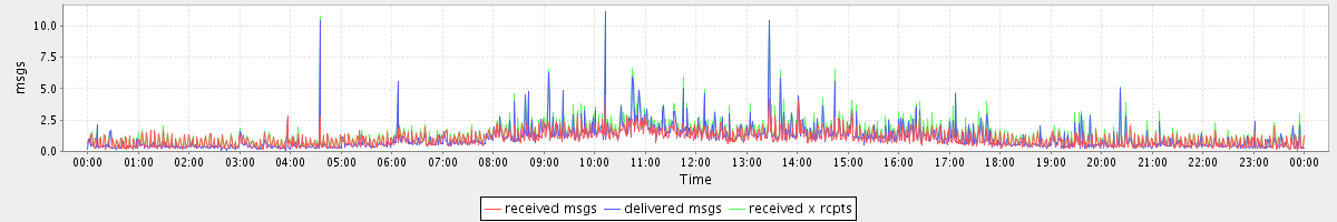 avg(received msgs) = 1.01 avg(delivered msgs) = 1.03 avg(received x rcpts) = 1.33