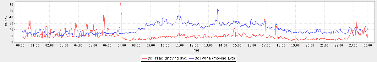 avg(sda1 read) = 22.84 avg(sda1 write) = 49.96