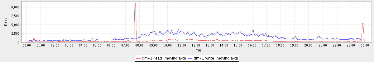avg(dm-1 read) = 426.76 avg(dm-1 write) = 1434.43