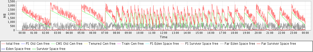 avg(total free) = 1832.02 avg(PS Old Gen free) = 0.00 avg(CMS Old Gen free) = 1319.98 avg(Tenured Gen free) = 0.00 avg(Train Gen free) = 0.00 avg(PS Eden Space free) = 0.00 avg(PS Survivor Space free) = 0.00 avg(Par Eden Space free) = 477.70 avg(Par Survivor Space free) = 34.34 avg(Eden Space free) = 0.00 avg(Survivor Space free) = 0.00