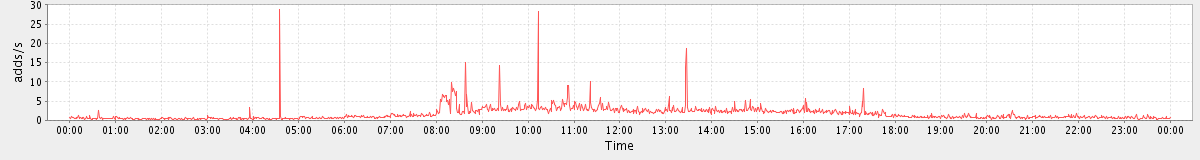 max(MsgActionRequest.move) = 1326.00 max(SearchRequest) = 491.00 max(MsgActionRequest.delete) = 925.00 max(NoOpRequest) = 301.00 max(MsgActionRequest.update) = 110.00 max(AddMsgRequest) = 375.00 max(GetFolderRequest) = 752.00 max(ItemActionRequest.delete) = 1198.00 max(SyncRequest) = 2788.00 max(GetAppointmentRequest) = 955.00