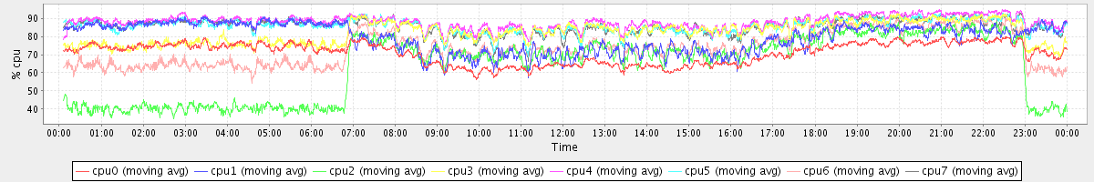 avg(cpu0) = 70.80 avg(cpu1) = 79.33 avg(cpu2) = 63.64 avg(cpu3) = 82.15 avg(cpu4) = 88.02 avg(cpu5) = 85.83 avg(cpu6) = 73.19 avg(cpu7) = 85.73