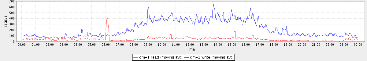 avg(dm-1 read) = 506.02 avg(dm-1 write) = 1233.09