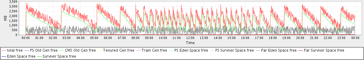 avg(total free) = 1853.27 avg(PS Old Gen free) = 0.00 avg(CMS Old Gen free) = 1339.91 avg(Tenured Gen free) = 0.00 avg(Train Gen free) = 0.00 avg(PS Eden Space free) = 0.00 avg(PS Survivor Space free) = 0.00 avg(Par Eden Space free) = 482.27 avg(Par Survivor Space free) = 31.09 avg(Eden Space free) = 0.00 avg(Survivor Space free) = 0.00